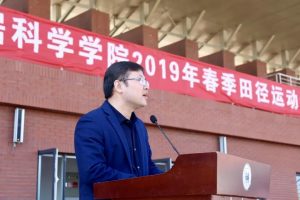 张慧川书记致辞,他希望全体同学在体育竞技中增强规矩意识、培养合作精神、锻炼意志品质,敢于挑战自我、超越自我,最终享受胜利的喜悦。