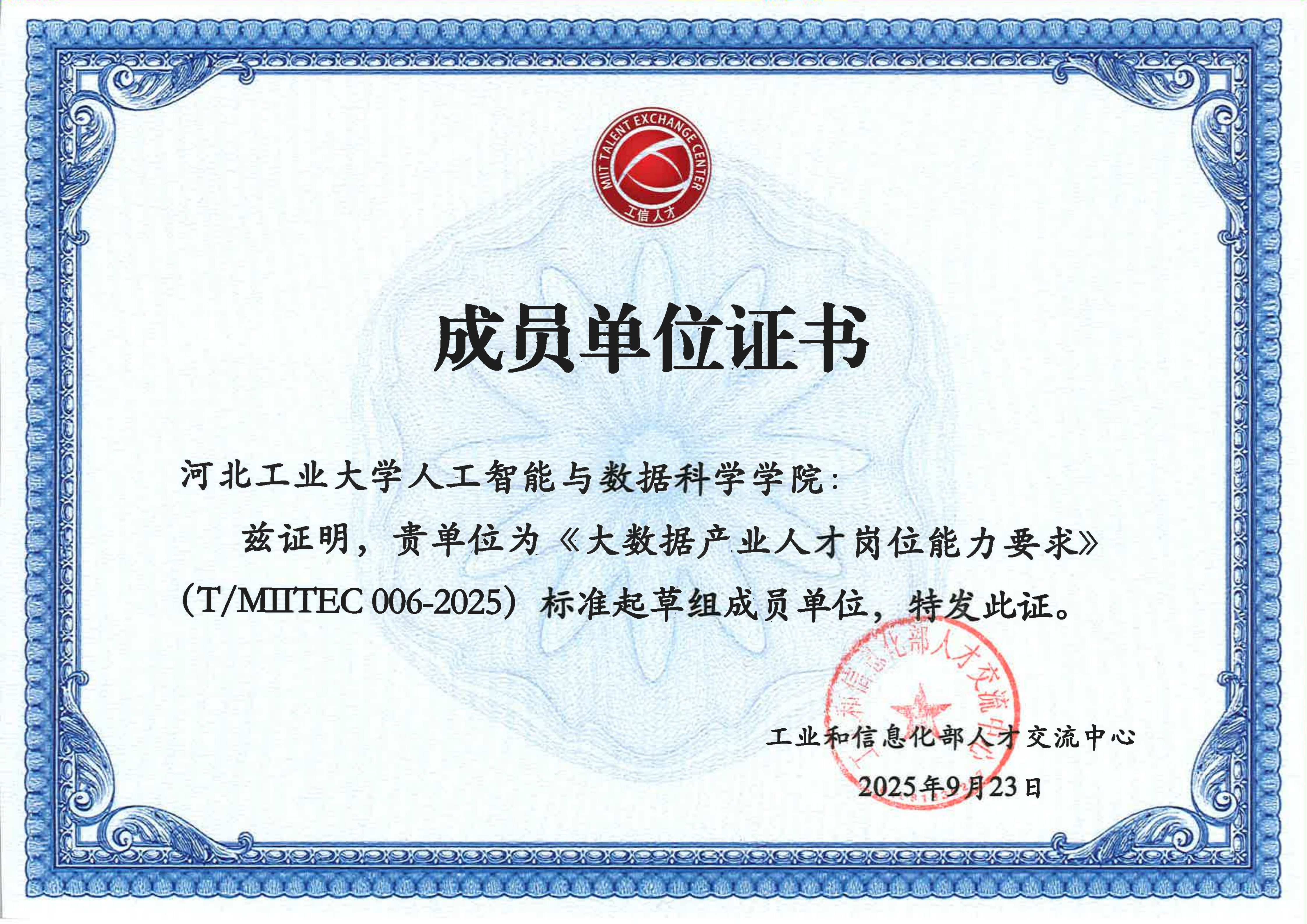 近日,51视频 51视频 收到工业和信息化部人才交流中心颁发的两份证书,标志着51视频 成功入选《人工智能教育人才岗位能力要求》(T/MITEC031-2025)与《大数据产业人才岗位能力要求》(T/MITEC 06-2025)两项工信部人才标准的起草组成员单位。刘晶研究员团队深度参与了这两项标准的前期调研、框架设计及核心内容研讨,为标准的科学性与实用性构建提供了重要支持。