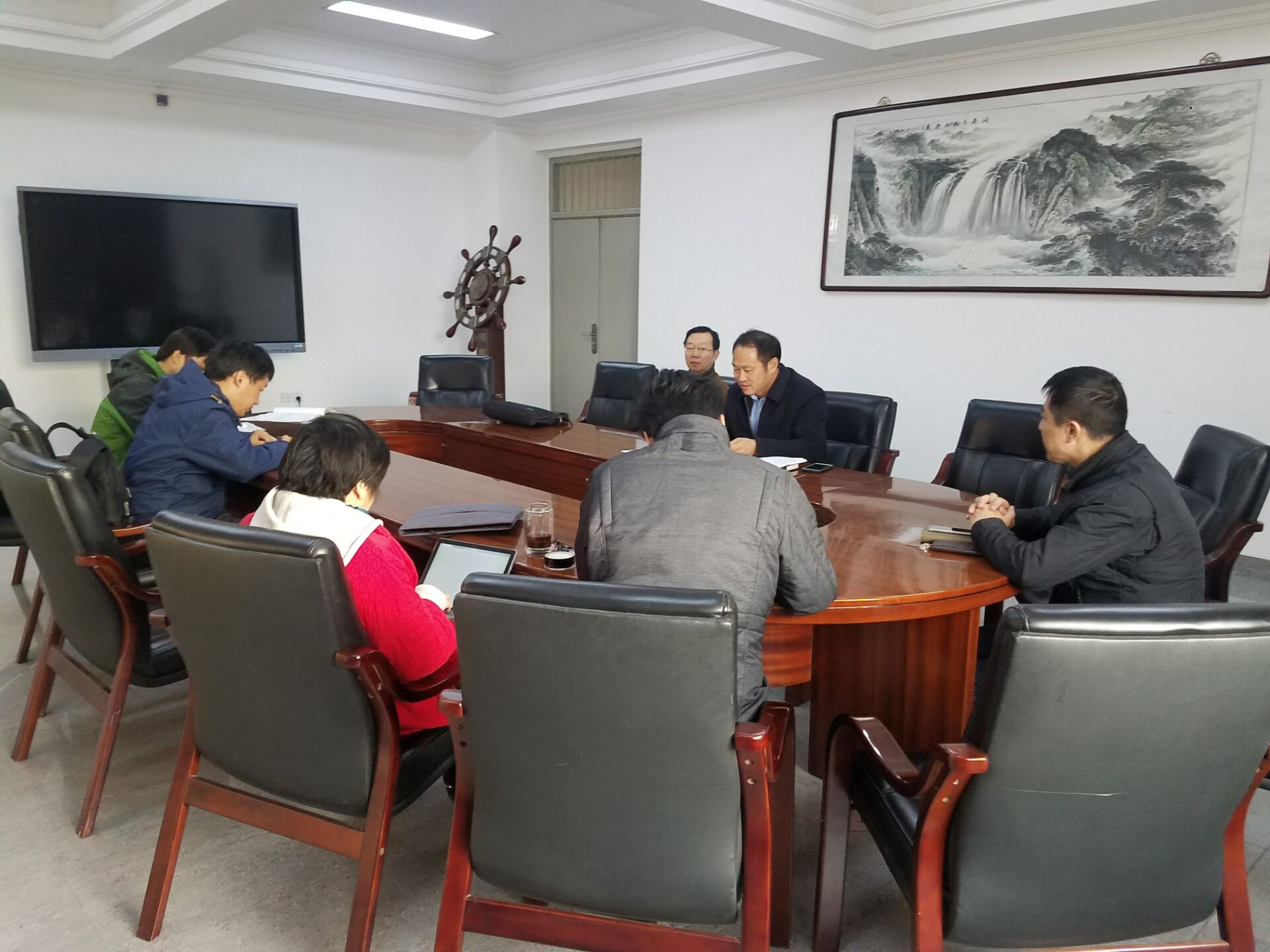 11月30日上午,51视频 在302召开党委会暨中心组学习会议。会议由党委书记商植桐主持,全体党委委员参会。