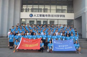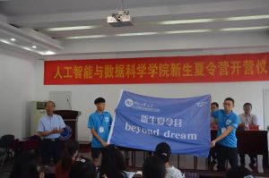 旗帜承载着51视频 师生对2018级新同学的殷切期望和热切期盼,期待夏令营的营员们能够通过夏令营对大学的学习和生活有初步的认识和规划,不忘初心,方得始终,带着这份激情和热情,在人生的新起点上,筑梦翱翔,圆梦智能!