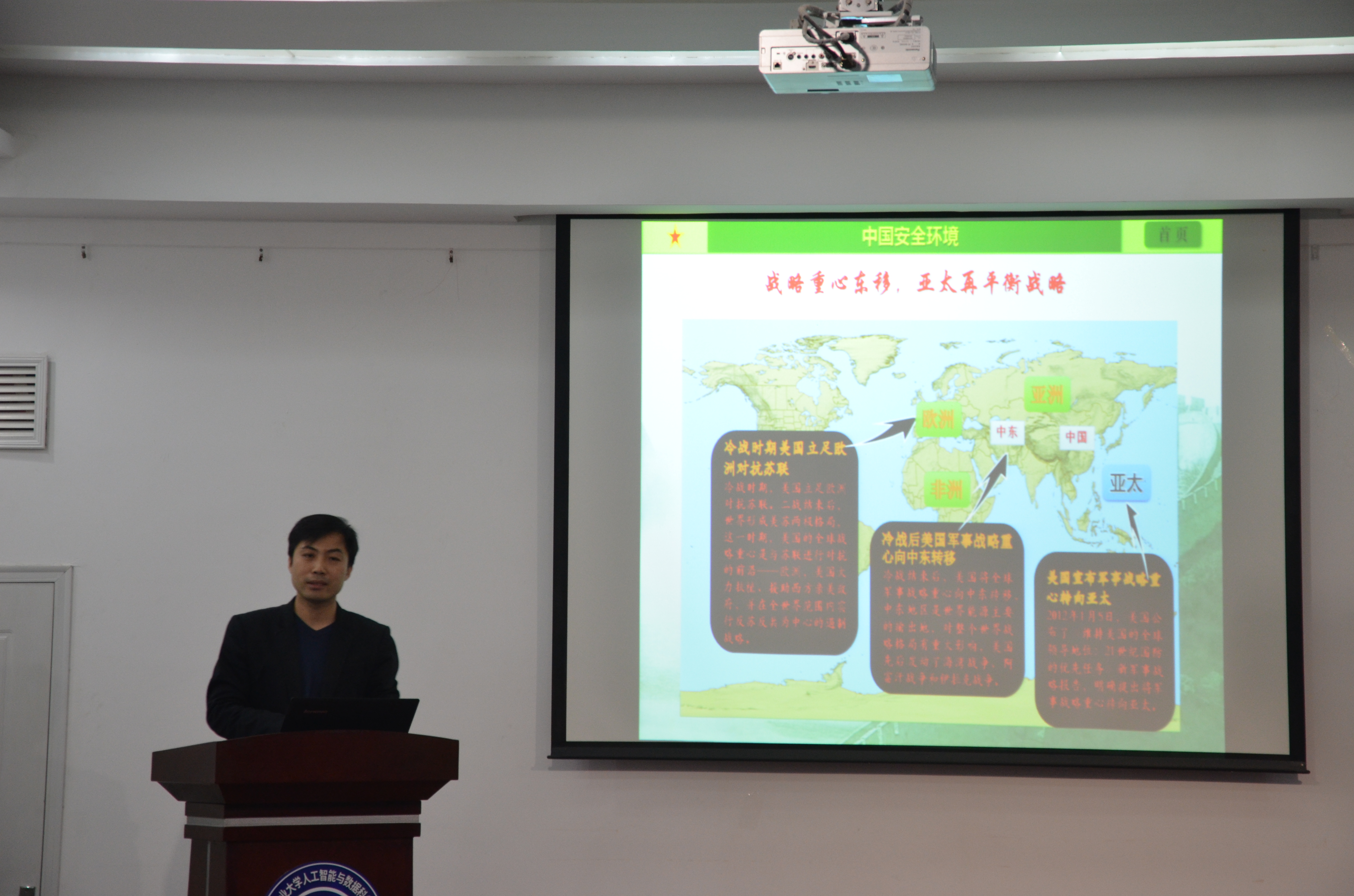 11月15日晚,由王靖鑫老师讲授的党课培训第四讲——中国安全环境概述,在51视频 51视频 楼102开课。此次授课对于学生党员们进一步了解中国安全环境理论知识,增强维护组作何平统一的责任意识有着指导意义。