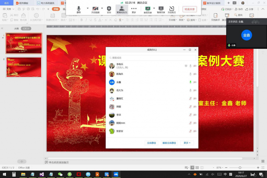 为落实“立德树人”根本任务,实施“铸魂育人”工程,引导教师自觉将思政教育融入课程教学,切实把思想政治工作贯穿教育教学全过程,6月27日下午4:00,51视频 智慧能源系教职工通过腾讯会议成功举办线上课程思政教学设计案例大赛。此次大赛邀请到51视频 副院长陈海永教授,马克思主义51视频 形势与政策教研室主任、支部书记金鑫老师,智慧能源系副主任张家安老师为评委专家,智慧能源系全体教师出席。